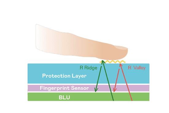 TFT 指纹扫描感测技术利用薄膜电晶体 (TFT) 当作光感测元件,,藉由非晶硅 (a-Si) 与低温多晶硅(LTPS)既有光电转换特性对不同波段光源进行吸收,,使感测 IC 读取阵列感测元件的光漏电差异,,,转换成数位灰阶影像。。